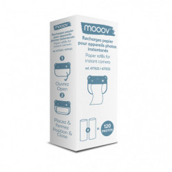 Le papier photo idéal pour vos appareils photos instantanés mooov (références 477522 et 477523). Transformez vos moments préférés en souvenirs durables grâce à cette recharge de 2 rouleaux de papier photo 100% recyclé. Chaque rouleau permet dimprimer jusquà 60 photos, à vous les impressions instantanées plus respectueuses de lenvironnement. Facile à installer : ouvrez le compartiment de votre appareil photo instantané mooov, positionnez le rouleau avec son début posé sur la roulette et refermez le compartiment. Pensez à avoir toujours un ou deux rouleaux d'avance pour ne pas être pris de court, soyez ainsi toujours prêt à immortaliser vos meilleurs moments de vie, en famille ou entre amis.