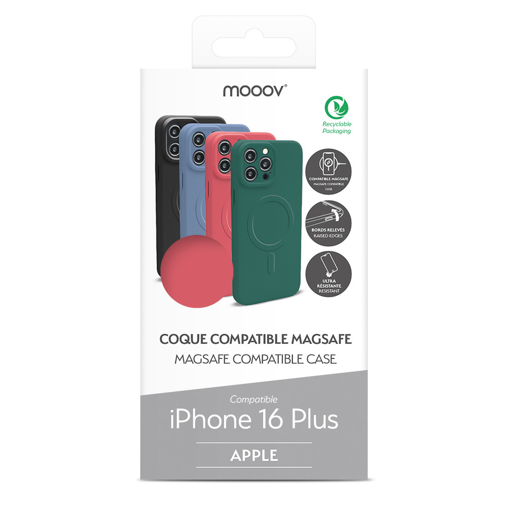 Cette coque compatible avec la technologie MagSafe assure un maintien et une position optimale du chargeur MagSafe pour une recharge rapide de votre iPhone compatible Magsafe