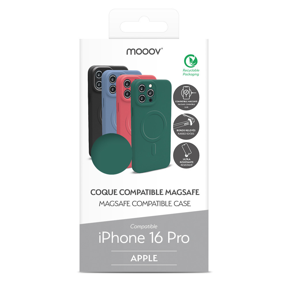 Cette coque compatible avec la technologie MagSafe assure un maintien et une position optimale du chargeur MagSafe pour une recharge rapide de votre iPhone compatible Magsafe. Cette coque est adaptée à l'utilisation de nos chargeurs MagSafe. Souple sur les côtés et rigide au dos, elle est conçue pour absorber les chocs du quotidien et protéger votre mobile contre la saleté et les rayures. Cette coque épousera parfaitement la forme de votre mobile en laissant un accès facile à tous les ports et fonctions utilisateur.