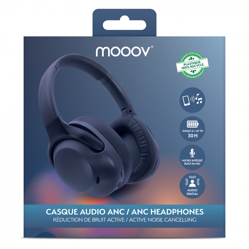 Casque audio sans fil ANC à réduction de bruit active - 100% Plastique recyclé bleu