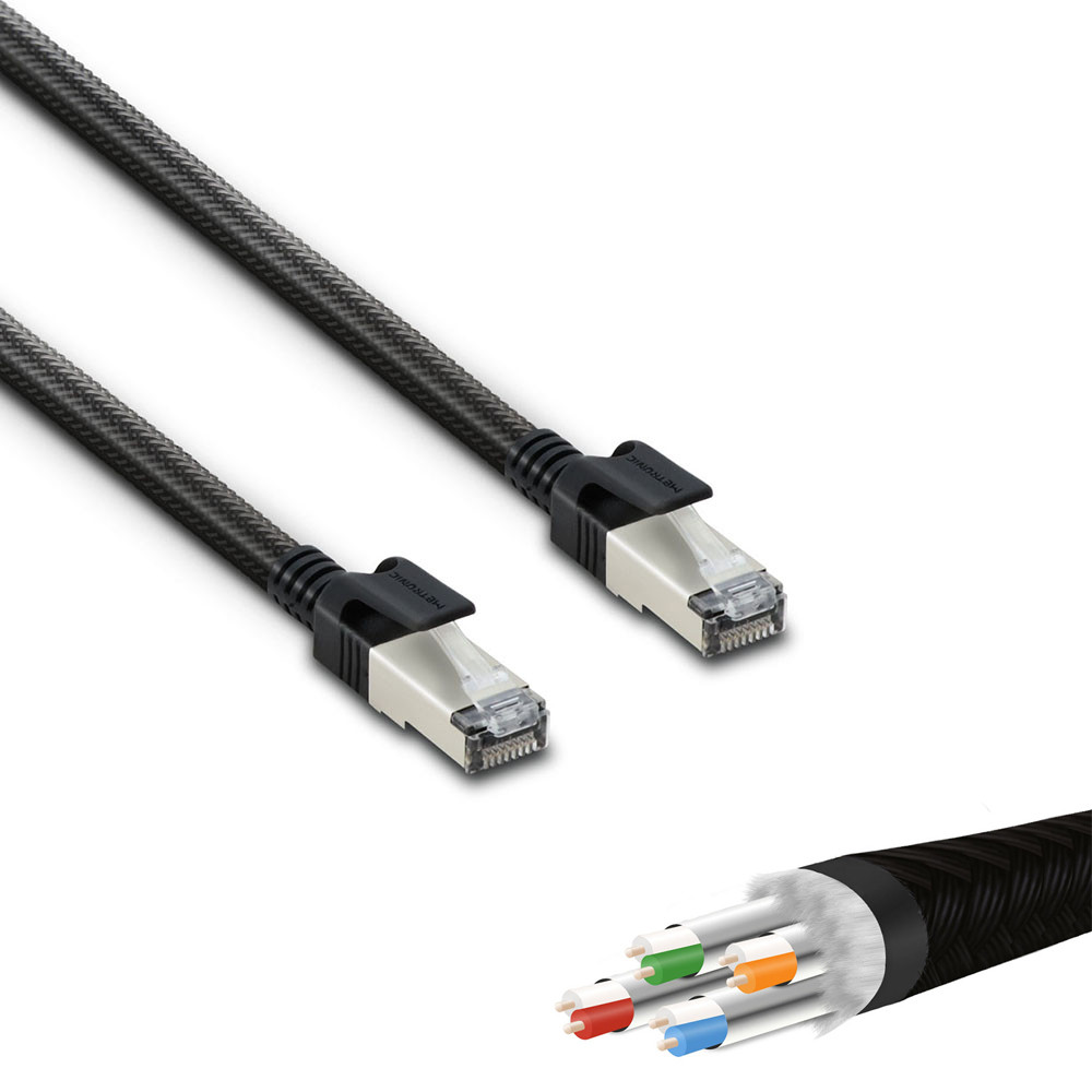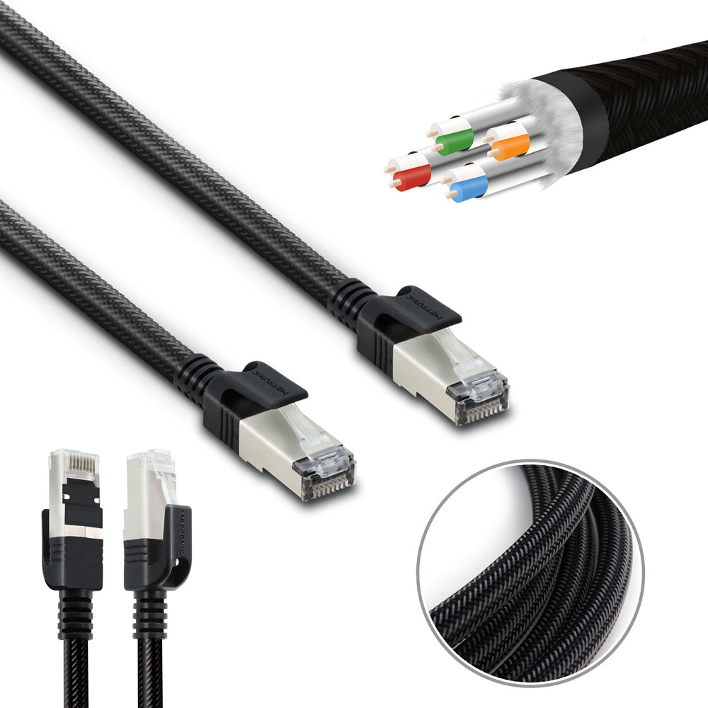 Permet de connecter à internet un ordinateur, une télévision ou une console de jeux dernière génération. Ce câble permet de relier tout appareil équipé d'une entrée RJ45 à une box internet ou TV, un routeur, un switch, une prise réseau ou CPL équipés d'une sortie Ethernet RJ45.Le câble RJ45 CAT 8 offre une vitesse de transmission des données jusqu'à 40 Gb/s soit 4 fois plus rapide qu'avec un câble RJ45 CAT 6A. Il offre une expérience d'Internet plus fluide et plus rapide,Transmission des données sans interférences grâce au blindage S/FTP avec des contacts dorés pour une connectivité supérieure.Sa gaine tressée assure une résistance au pliage et aux manipulations liées aux branchements répétitifs.