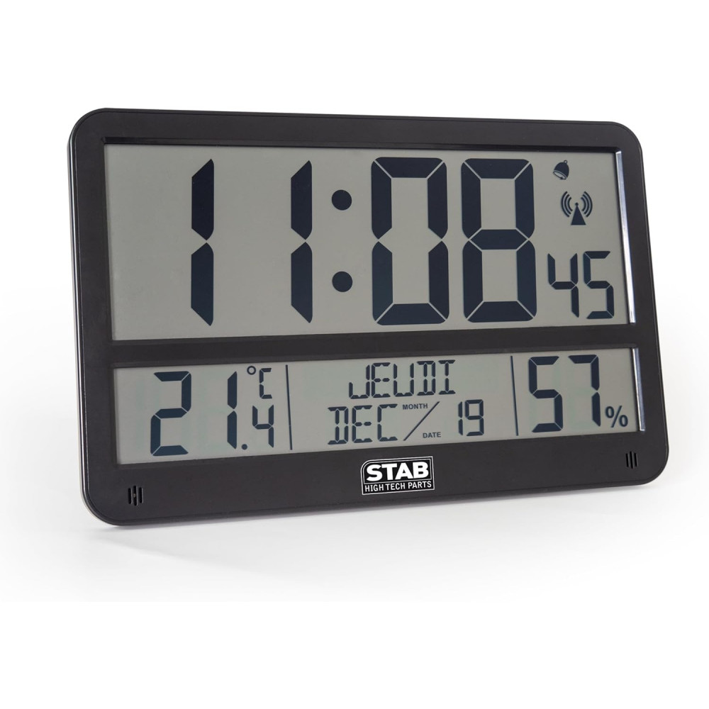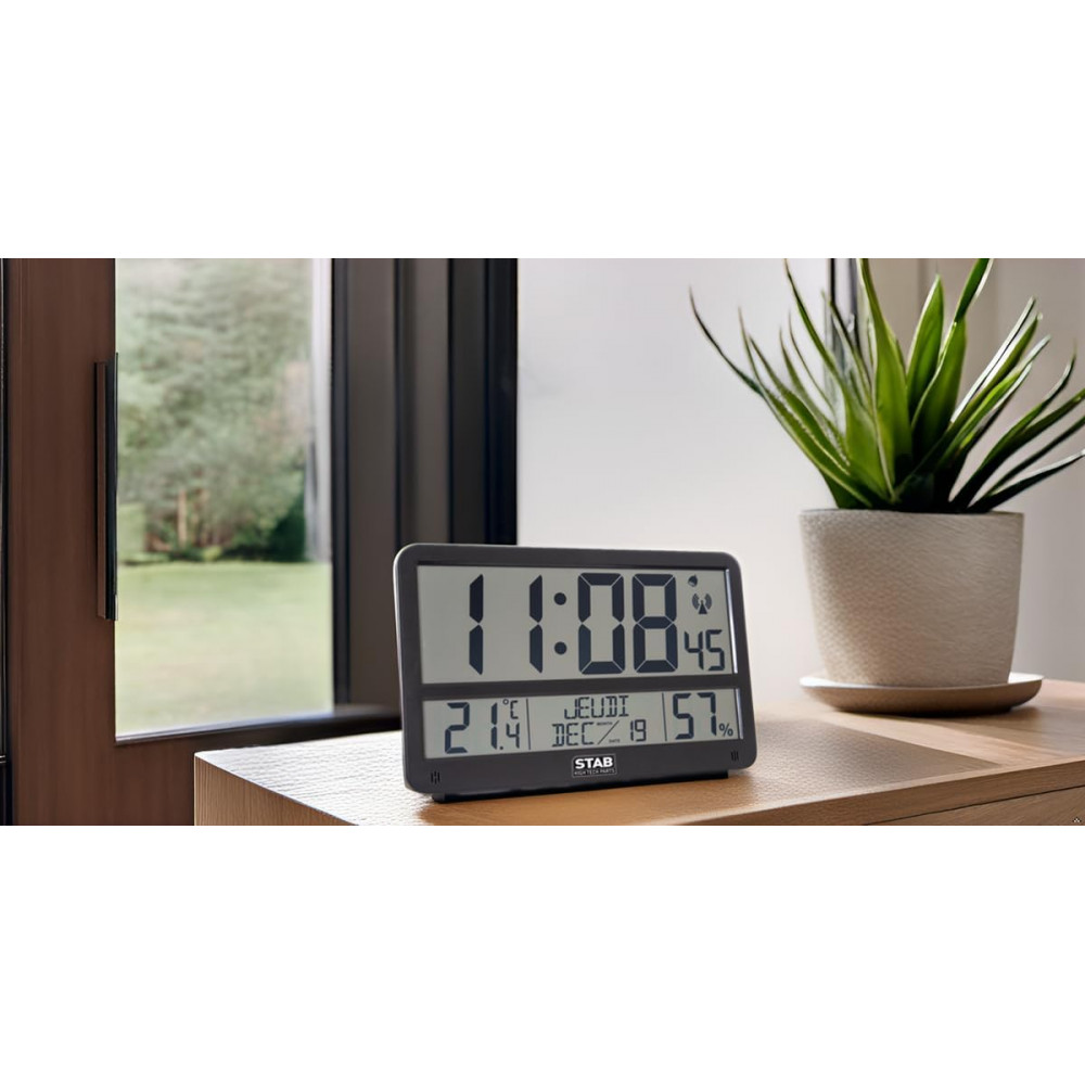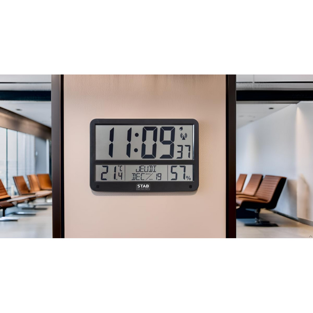 - Ultra-fonctionnelle : elle affiche jour, mois et année en lettres, ce qui apporte un vrai plus pour les seniors, les bureaux, les cuisines ou l’entrée de la maison.