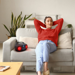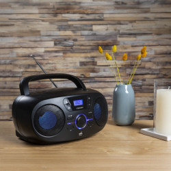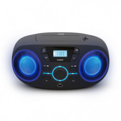 Appréciez les nombreuses fonctionnalités de ce lecteur CD lumineux : écoutez vos CD, CD-R, CD-RW, CD-MP3 mais aussi la radio FM et les musiques préférées stockées sur votre clé USB. Appréciez un son stéréo d'une puissance totale de 6 W tout en profitant de ses 7 effets lumineux. Vous pouvez également brancher votre casque pour profiter de votre musique en toute tranquillité. Avec sa poignée de transport et sa forme ergonomique, vous pouvez facilement le transporter pour l'écouter dans toutes les pièces de votre maison. Pratique, il fonctionne sur secteur ou à piles (non fournies).