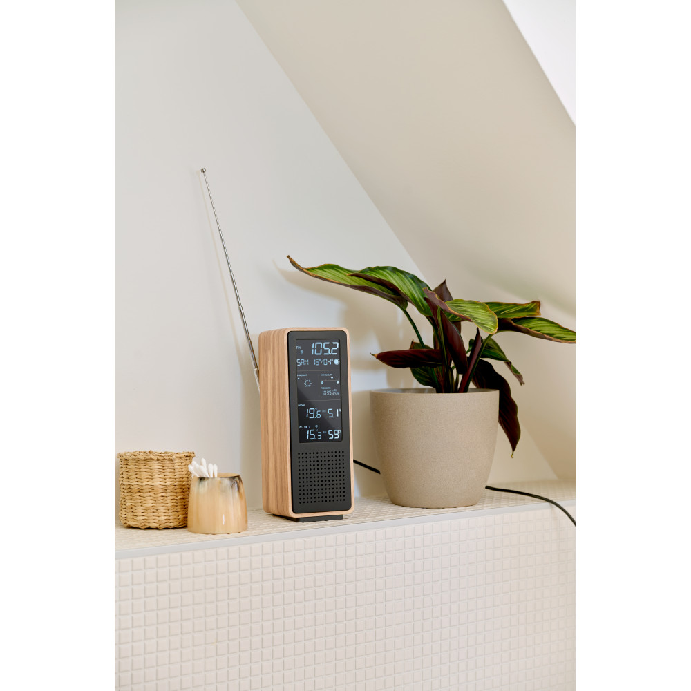 Découvrez notre enceinte Bluetooth compacte et filaire, le compagnon idéal pour votre musique et votre quotidien. Plus qu'une simple enceinte, elle intègre une station météo complète pour vous tenir informé en un coup d'œil.