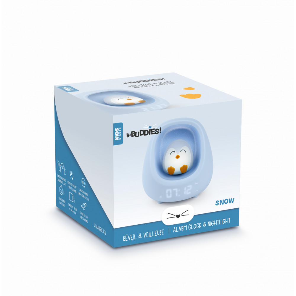 Apportez réconfort et autonomie aux enfants avec Snow, le réveil veilleuse Pingouin signé Hi Buddies! de Bigben Kids. Adapté aux enfants de 3 à 8 ans, cette veilleuse associe un réveil intégrant des sons relaxants et un affichage clair pour simplifier le quotidien.