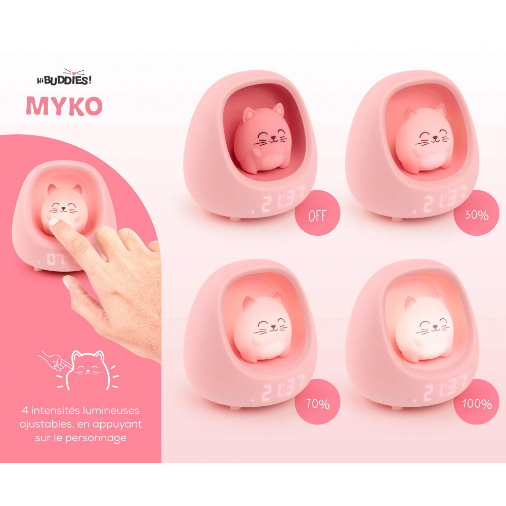 - Avec son design tendre et amusant, Myko le Chat devient un véritable compagnon de chambre, apprécié aussi bien des parents que des enfants. Son format compact et ses touches simples d’utilisation encouragent les plus jeunes à gagner en autonomie.