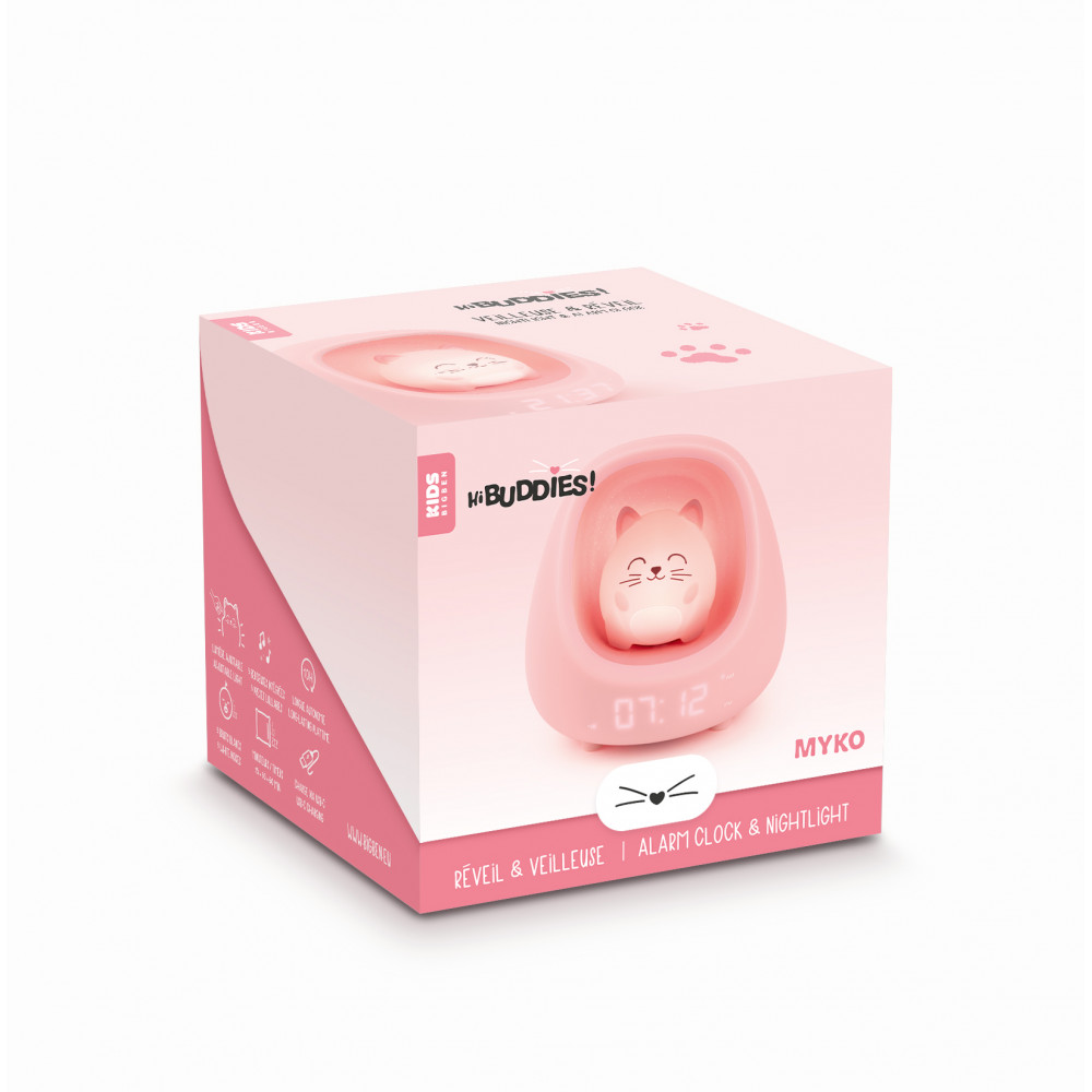 Transformez le coucher en un moment serein avec Myko, le réveil veilleuse en forme de chat. Conçu pour les enfants de 3 à 8 ans, ce compagnon lumineux apporte douceur et réconfort tout au long de la nuit.